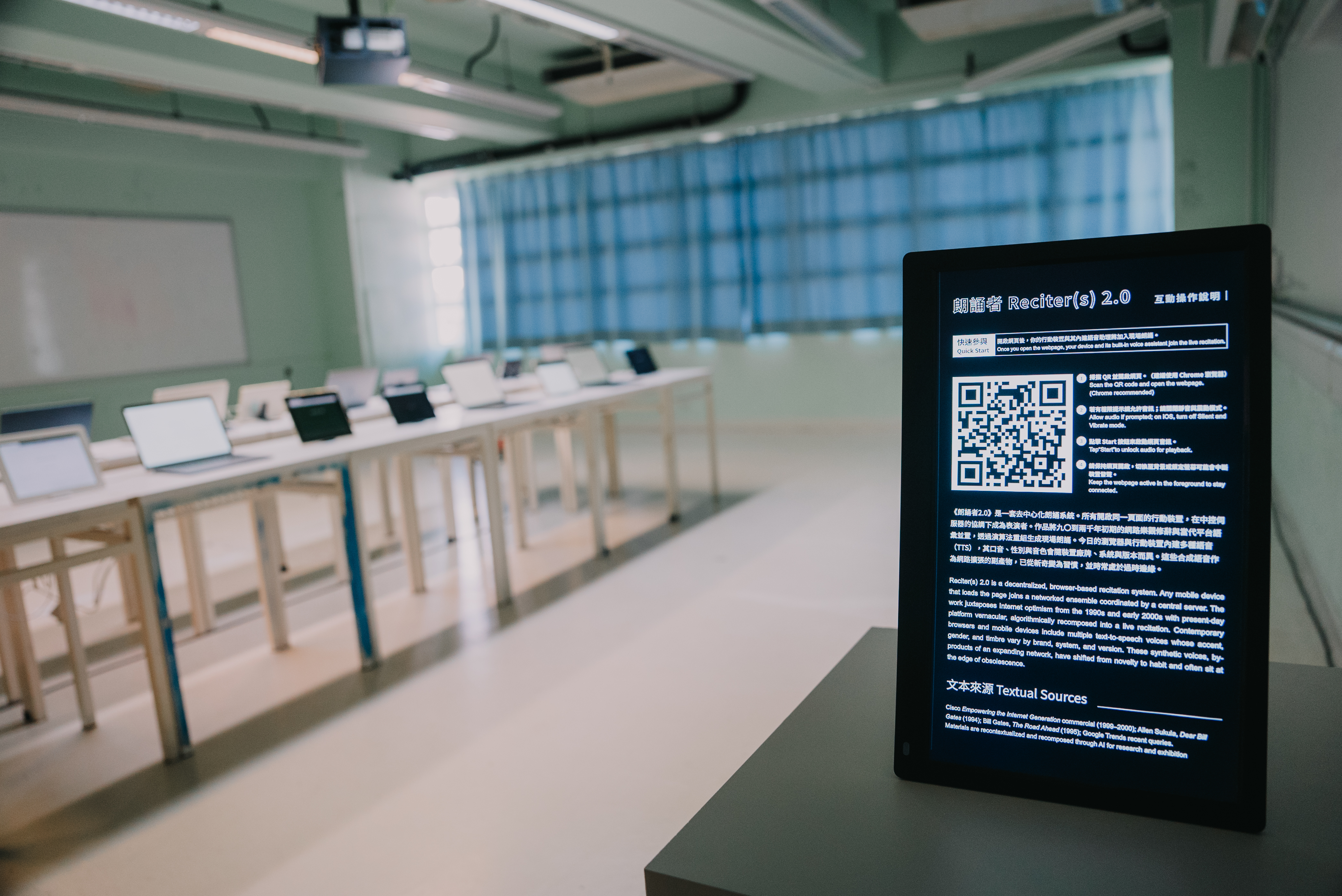 《朗誦者 2.0》是一場由行動裝置、語音助理、AI 衍生文本共同構成的分散式聲響表演。觀眾僅需透過行動裝置開啟網頁,即可加入這場由不同口音與節奏形塑的朗誦練習,將網路世界的連通性、同步能力及傳輸誤差轉化為可感知的聲音。